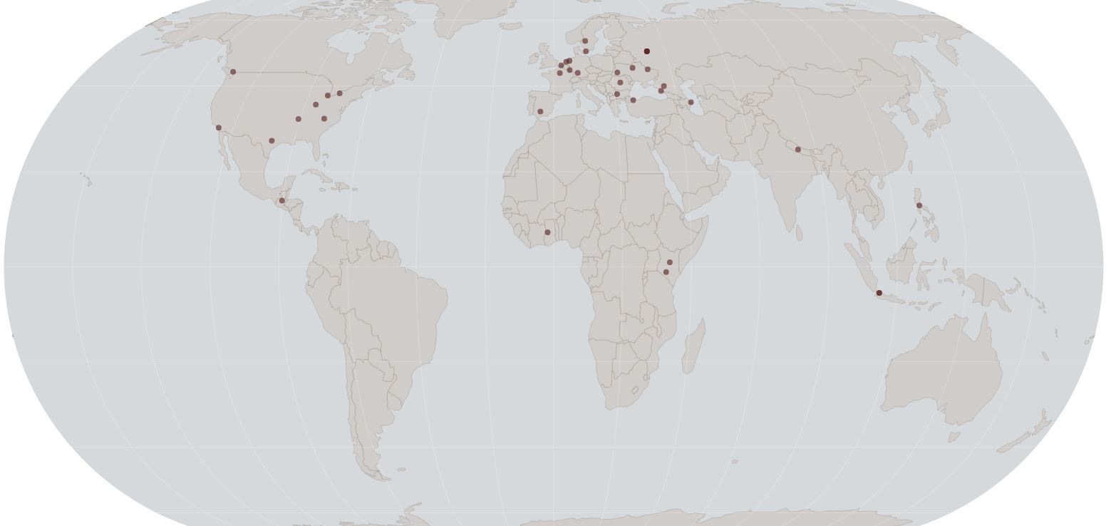 Figure 8 shows the geographical location of 46 (those with location data) of 46 (scanned by Shodan) of the 48 C2 server IP addresses used in the analysed configs.